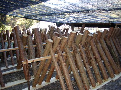 常識として一般的にキノコを原木栽培(ほだ木で栽培)するにはどんぐりなどの広葉樹を用いますが今回は杉や桧といった針葉樹が原木です。