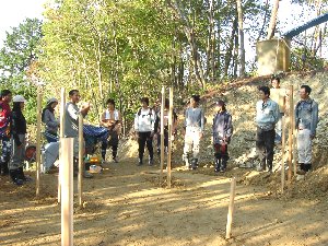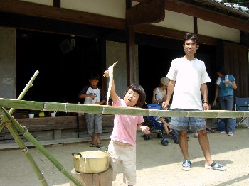 古民家では山の赤土とわらを練り込んで何ヶ月か寝かせておいた土壁塗りを山を開拓して出来た土地には 屋敷の土台を固める床締めと古木磨きをみんなでやりました。ちなみにそこには縄文時代の竪穴式住居を 建てる予定です。地道な作業も遊び心で、環境のことや周りの自然とのマッチングなど一つ一つ感心しますね。