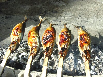 大晦日からの雨雪がおさまり晴れ間の中に予想される寒さの新年が始まりました。普段より多少朝寝坊しながらも元日の朝刊に目をやり地元の神社に初詣を済ませ、戻ってくると民宿のご近所では塩サバの串焼きをやっています。