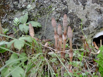 ところで、春の季節の移り変わりはめまぐるしく早いですね。蕗のとうが花をつけたかと思うともう既に 土筆が顔を出しています。民宿近辺の石垣の元でいっぱい出ていました。