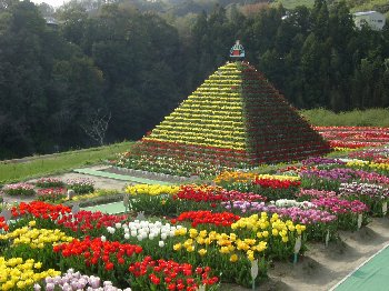 会場横を流れる貴志川にはチューリップ満載の花イカダやなんといっても来園者を驚かせたのは 高さ6,5mの色とりどりの花ピラミッドでしたね。